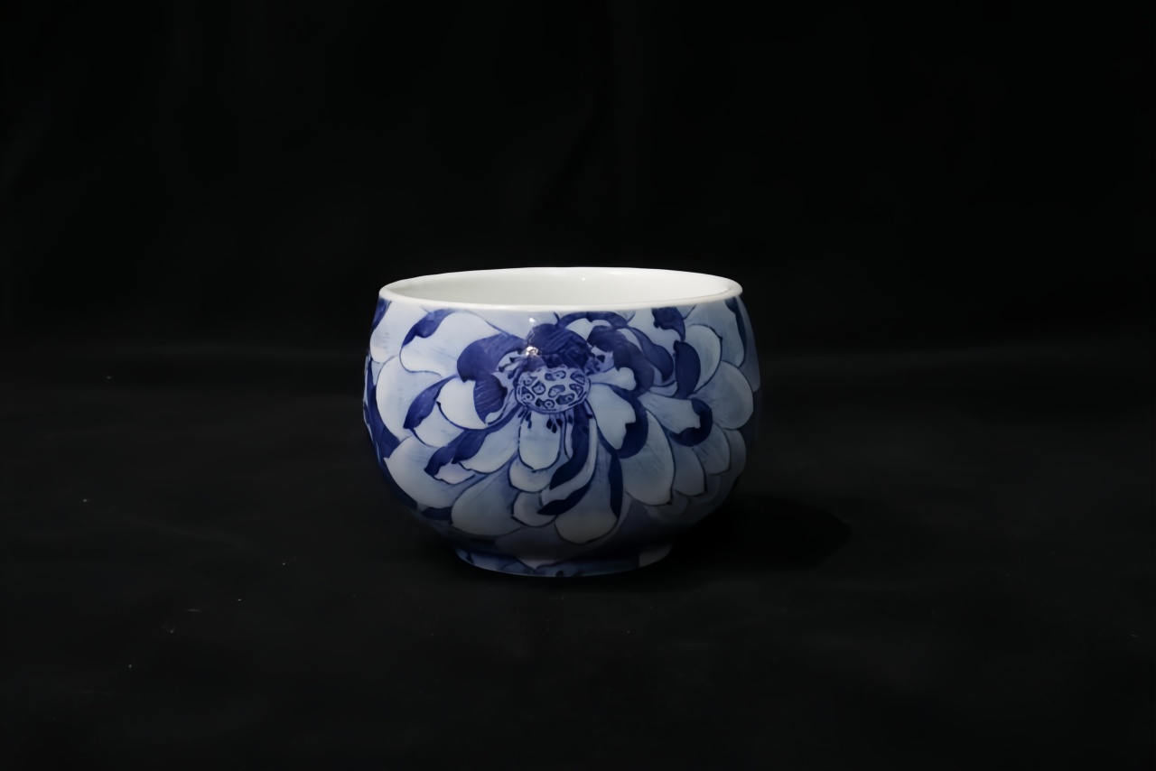 釉下青花是其作品的灵魂所在。她以青花料在坯体上勾勒填色,经高温烧制后,蓝白相映的色调尽显清雅韵味。绘制荷花时,她通过青花料的浓淡晕染,表现花瓣的叠错层次与通透质感,既保留了中国传统水墨画的写意意境,又彰显了陶瓷材质的独特肌理,传递出宁静悠远的东方美学意蕴。