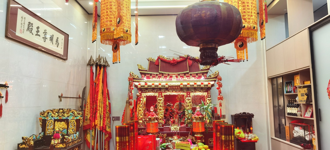 中华文化报讯(记者 郑军 周绍群) 彩灯映古殿,戏韵绕乡邻。2025年10月16日(乙巳年八月廿五日),福建省石狮市蚶江镇洪窟村里翻新落成的马明尊王殿香火鼎盛,一场融合道佛文化与闽南民俗的诞辰庆典在此隆重举行。连续三晚的高甲戏演出与百人寿宴交织,让这座供奉道教护法神祇的古殿成为喜庆海洋,尽显闽南“第二春节”的独特魅力。