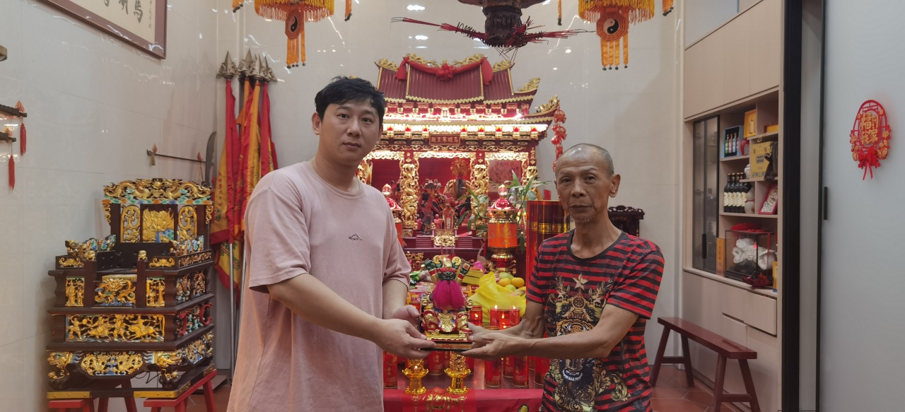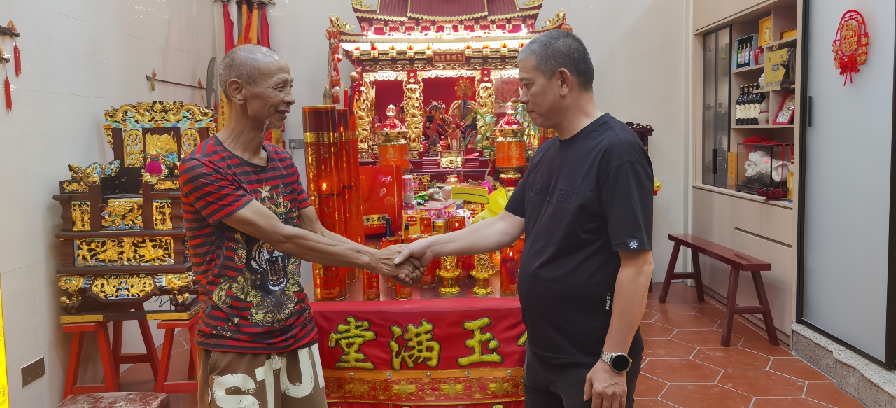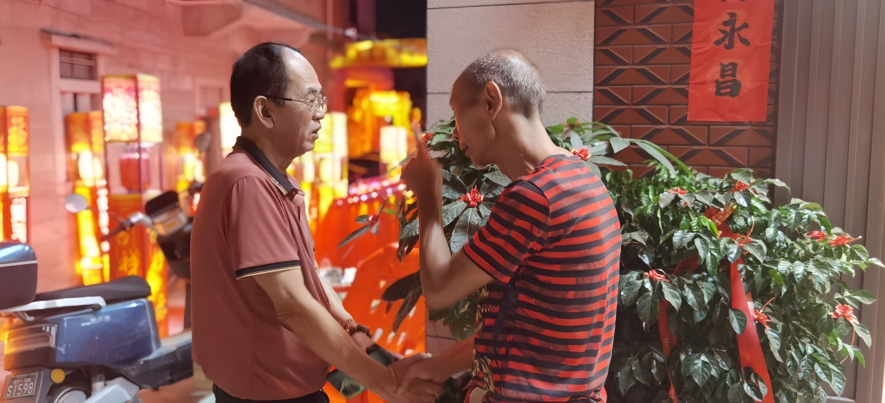 晚七点半,一阵清脆的鞭炮声划破夜空,寿宴正式开席。数张餐桌在马明尊王殿前依次排开,卤味、海鲜、蒸糕等闽南特色菜肴陆续上桌,诱人香气四处弥漫。“五魁首!六六顺!”席间传来此起彼伏的猜拳声,尽显闽南人的豪爽性情。马明尊王殿负责人洪维炮大师手持酒杯逐桌敬酒,他在致辞中表示:“庆典不仅是纪念马明尊王诞辰,更是要传承闽南人感恩向善的文化基因,让古俗焕发新生。”同时,洪维炮大师也向黄丽丹等社会热心人士的关心和支持表示感谢。